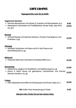 Sehr geehrte Gäste, bitte fragen Sie unsere Mitarbeiter wenn Sie Informationen über Allergene und Zusatzstoffe benötigen.